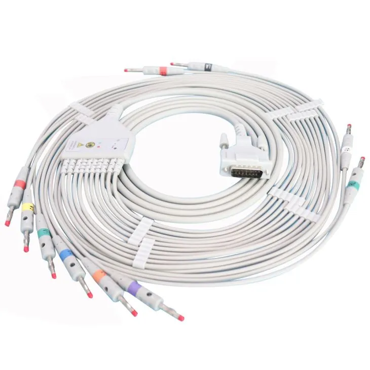 Etiqueta: Schiller ekg cable, aha, db15m > plátano 4.0, China, fabricantes, personalizado, a granel, compra descuento, precio bajo, alta calidad, Cable cardíaco para diagnóstico de enfermedades cardíacas., Cable de ecg para diagnóstico de enfermedades cardíacas.