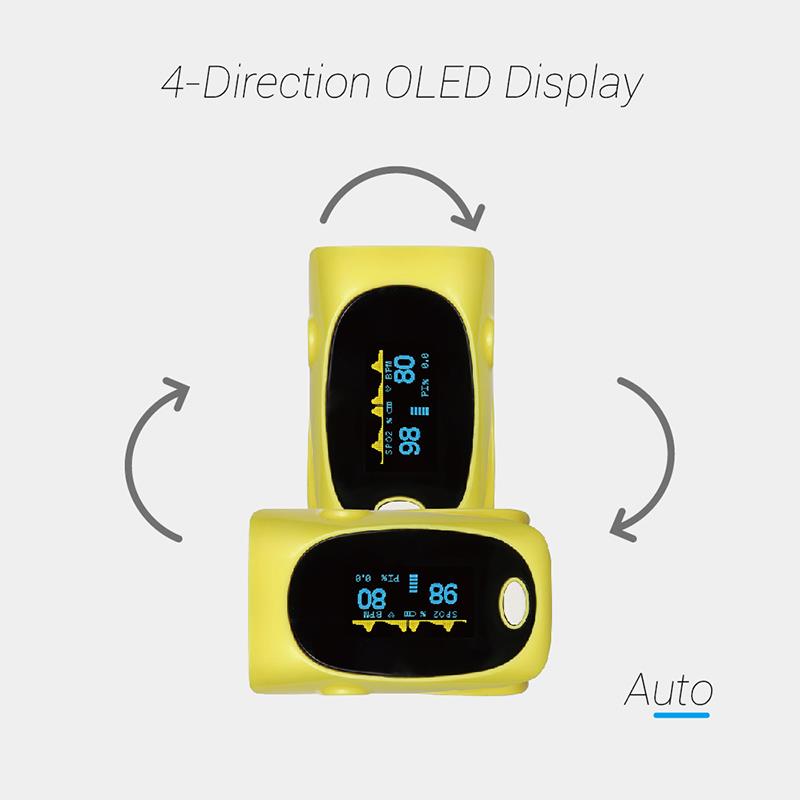 - Pantalla OLED de doble color Forma de onda SpO2 PR, Barra de pulso