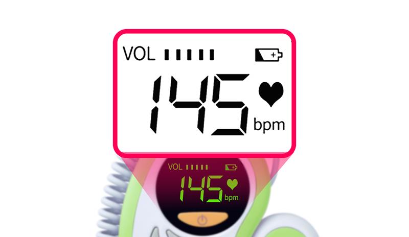Pantalla retroiluminada por LED, comprensión más intuitiva de la frecuencia cardíaca fetal, volumen ajustable, escuchando los latidos del corazón del bebé