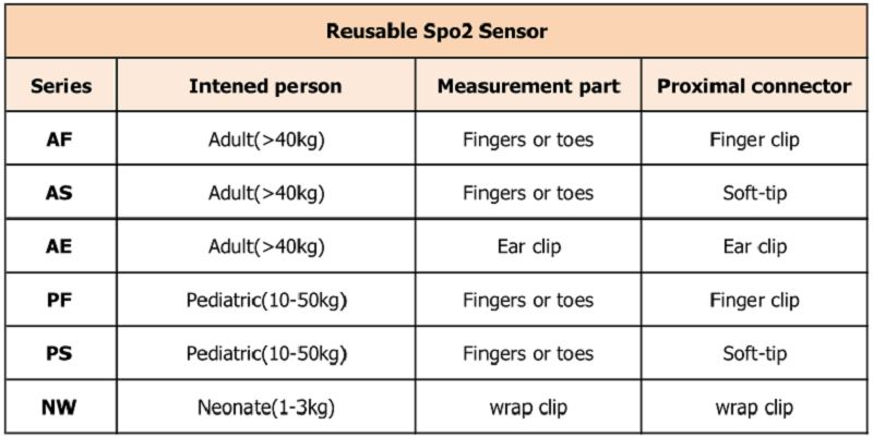 (Serie AF&AS) El sensor spo2 reutilizable Greatmade está conectado con el oxímetro de pulso compatible para el monitoreo continuo no invasivo de la saturación funcional de oxígeno de la hemoglobina arterial (SpO2) y la frecuencia del pulso (PR) para pacientes adultos que pesen más de 40 kg.